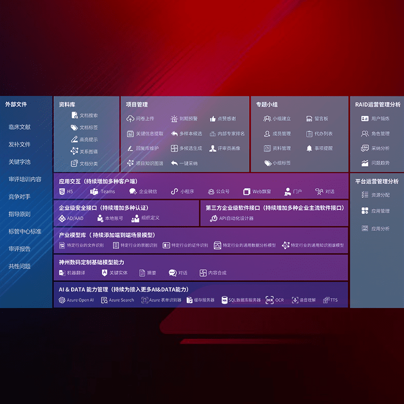 医疗器械产品上市前,,,,要熟悉严格与繁复评审标准,,,整理分析监管机构指导文件中的海量信息。。企业急需一个智能化解决方案,,,,提升知识管理效率,,,提高评审通过率,,,以提升其市场竞争力。。。
